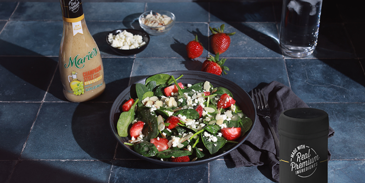 Sweet strawberries, crisp spinach, and crunchy almonds make this salad a fresh favorite, especially when tossed in Marie’s® Champagne Vinaigrette. It’s light, bright, and just the thing for brunches, showers, or sunny patio lunches.